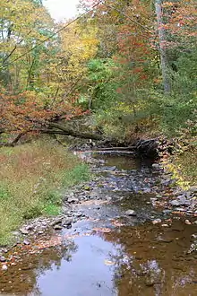 Roaring Creek is a tributary of the Susquehanna River in Columbia County and Montour County, in Pennsylvania, in the United States. It is slightly more than 20 miles (32 km) long and flows through Roaring Creek Township, Locust Township, Catawissa Township, Cleveland Township, and Franklin Township in Columbia County and Mayberry Township in Montour County.[1] The watershed of the creek has an area of 87.3 square miles (226 km2). It has three named tributaries: South Branch Roaring Creek, Lick Run, and Mill Creek. The creek is not considered to be impaired and is not affected by coal mining. However, its watershed has been impacted by human land use. Claystones, conglomerates, sandstones, siltstones, and shales all occur within the watershed. The creek flows through a gorge in its lower reaches, along the border between Columbia County and Montour County.