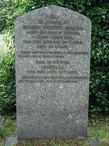 After her sudden death in April 1886, in failing health, he went to the Riviera, and died at Grasse on 27 October 1886. He was buried in London on 3 November.[1][9] His grave lies on the east side of the main path from the north entrance to the central colonnades in Brompton Cemetery in London.