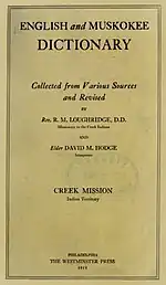 1. Creek Language Archive - The Bookshelf Archived 2008-05-09 at the Wayback Machine, The College of William and Mary. Accessed January 22, 2008. "For almost a hundred years, there was only one Creek dictionary, first published in 1890"