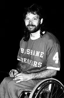 In 1977, he moved to Queensland, and began coaching and playing in the bottom-of-the-ladder Queensland wheelchair basketball team, the Brisbane Breakers. They lost the grand final match of the National Basketball Championships in 1978 by one point, and had back-to-back wins in 1980 and 1981.[2] At the 1980 Arnhem Games, he won a bronze medal in the Men's Slalom 5 event, and coached the national wheelchair basketball team.[3][4]
