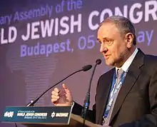 ![]() Robert Singer, Chief Executive Officer of the World Jewish Congress, speaking at the Plenary Assembly of the organization in Budapest, Hungary, 6 May 2013 | |
