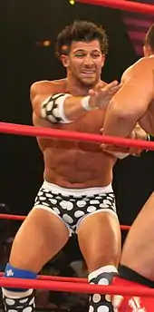 Eckos spent his early career in the Independent Wrestling Federation (IWF), a local promotion based in Woodland Park, New Jersey. In January 2002, Eckos was one of several independent wrestlers to star in a commercial for the 2002 Royal Rumble.[6] Eckos also made three appearances for Total Nonstop Action Wrestling (TNA) on their secondary Xplosion television show, losing to Josh Daniels on May 21, 2003, Norman Smiley on August 6, 2003, and to Team Canada (Eric Young and Johnny Devine) in a tag team match, where he teamed with Damian Adams, on July 4, 2004.[15][16] A participant in the 2007 Super 8 Tournament,[17] he defeated Billy Bax in the opening round before losing to Sonjay Dutt in the semi-finals in Newark on November 10. He later lost to Billy Bax in a rematch on December 1, 2007.