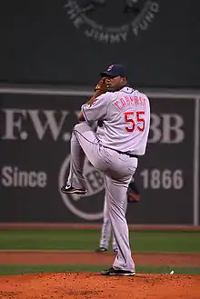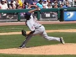 Hernández pitching for the Cleveland Indians in 2008