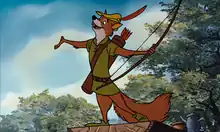 Robin Hood is the protagonist of the film Robin Hood (1973). He does not see himself as a criminal but as a hero. Although Robin Hood is often shown as an outlaw who chooses to rob from the rich to help the poor people, in this animated version, he is shown mainly attacking Prince John and his agents, who have impoverished Nottingham with high taxes. Robin Hood and Little John steal the tax caravans[5] and give it back to the peasants while trying to avoid capture by both Prince John and the Sheriff of Nottingham. He is also in love with Maid Marian.