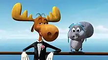 Rocky and Bullwinkle (also known as Another Fine Moose You've Gotten Me Into or The Man In The Iron Moose) is a 2014 American computer-animated direct-to-video short film based on the 1960s animated television series The Rocky and Bullwinkle Show, produced by DreamWorks Animation and distributed by 20th Century Fox. The short was directed by Gary Trousdale, (who is best known for co-directing Disney's Beauty and the Beast) while Robert Ben Garant and Thomas Lennon were the writers (They also provided the voices of Fearless Leader and the narrator for this short).[1] June Foray reprises her role as Rocky in her final voice role before her death on July 26, 2017, while Tom Kenny voices Bullwinkle. Originally planned as a theatrical short to accompany with Mr. Peabody & Sherman (which is also based on characters from The Rocky & Bullwinkle Show), it was released on October 14, 2014, on the Blu-ray 3D of the film.