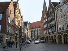 Roggenmarkt is a city square and marketplace in the city of Münster in the German state of North Rhine-Westphalia. It lies to the northeast of the Münster Cathedral at the city center. The Roggenmarkt is located north of the city's main Prinzipalmarkt and extends in an arc to the west away from St. Lambert's Church. The two markets flow into each other.