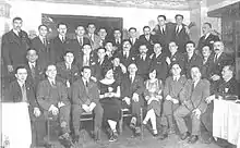 Prior to 1931 elections Oyarzun lamented Quema de conventos[80] and advocated an alliance of Catholic, monarchist, patriotic and regionalist forces.[81] Entrusted by Don Jaime with launching a Carlist daily, he failed due to financial issues[82] but launched an own Pamplona-based review, Tradición.[83] In the 1936 elections he ran as a Carlist candidate on a joint Candidatura Contrarrevolucionaria ticket in Madrid[84] and failed.[85] The July 1936 coup caught Oyarzun on a diplomatic mission in Vienna. Asked to sign a declaration of loyalty he refused, in his August 2 statement noting that such an act would violate his conscience, especially given the government was dominated "por elementos revolucionarios, comunistas y socialistas revolucionarios".[86] He then travelled to the Nationalist zone offering the Burgos junta his services,[87] only to find that in late September he would have to visit Vienna again: together with a group of top Carlist politicians he attended the funeral of his king Don Alfonso Carlos and in October he visited the new regent Don Javier in his Puchheim residence.[88]