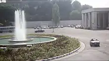 The square outside of the station was named Piazzale dei Partigiani after World War II. Now, the square's primary function is a bus terminal and parking facility. Before 1990, however, the piazza was embellished with a well-maintained garden and a now-nonfunctioning fountain that was built in the 1950s as part of the design of the station's architect Roberto Narducci. The fountain was inexplicably excluded from the modernization and renovations for the 1990 World Cup, even though the square was part of the ambitious "Cento Piazze" beautification project.[4] The small palm gardens that surround the parking lot are today occupied by a number of homeless people, asylum seekers, and political refugees.[5] Every Monday and Friday, Red Cross volunteers use the square to distribute food to the city's homeless population, despite protests from the area's residents who say that the organization arbitrarily selected the site.[6]