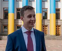 Roman Mykhailovych Lozynskyi (Ukrainian: Роман Михайлович Лозинський; born 20 January 1994) is a Ukrainian politician and public figure, People's Deputy of Ukraine,[1] First Deputy Head of the Committee on Service, Local Self-Government, Regional Development and Urban Planning[2] of the Verkhovna Rada of Ukraine (Ukraine's parliament), a member of Euronest Parliamentary Assembly. A former chairman of the Ukrainian Galician Party and a former member of the "Holos" ("Voice") political party.[3] On 29 July 2021 Voice expelled Lozynskyi from the party.[4]