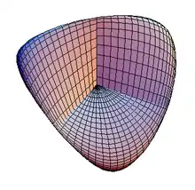 The two paraboloids together look like a pair of orchids joined back-to-back.