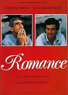 Romance is a 1986 Italian drama film directed by Massimo Mazzucco. It was entered into the main competition at the 43rd Venice International Film Festival,[1] in which Walter Chiari won the Pasinetti Award for best actor.[2] For his performance Chiari also won the Ciak d'oro for best actor.[3]