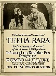 Romeo and Juliet is a 1916 American silent romantic drama film directed by J. Gordon Edwards and starring Theda Bara. The film was based on Shakespeare's Romeo and Juliet and was produced by the Fox Film Corporation.[1] The film was shot at the Fox Studio in Fort Lee, New Jersey,[2] and is now considered to be lost.[1][3]