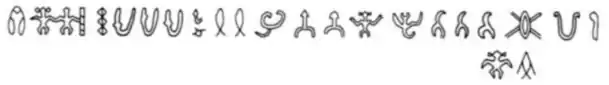- Side a, as traced by Fischer. On the tablet, the pair of glyphs is completely separate from the main line.
