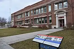 The 1919 design included eight classrooms, office, library, auditorium, and gymnasium.[3] The building required 450,000 bricks.[4] In 1946 a 4-room expansion was added to the east side,[2][5] and a 3-room expansion was added in 1951.[6]