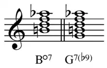 A comparison of the diminished 7th Play and dominant 7th[11] (9) Play chords.