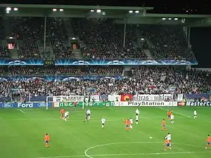 The club plays its home matches at Lerkendal Stadion, an all-seater stadium in Trondheim. Since the last rebuilding in 2002, it can host 21,166 spectators.[5] Rosenborg's record attendance in a European match of 22,492 dates from the 1968–69 European Cup match against Rapid Wien.[6]