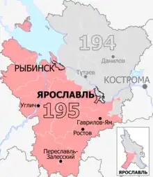 The Rostov Constituency (No.195[lower-alpha 1]) is a Russian legislative constituency in Yaroslavl Oblast. Until 2007 the constituency covered most of Yaroslavl Oblast outside the city of Yaroslavl. Since 2016 the constituency was gerrymandered to include half of Yaroslavl and southern and western Yaroslavl Oblast.