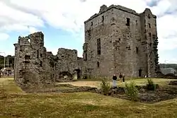 Rosyth Castle is a fifteenth-century ruined tower house on the perimeter of Rosyth Naval Dockyard, Fife, Scotland.
