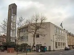 Because much of the former Surrey Docks had strong trade links to Scandinavia and the Baltic region, the area is still home to a thriving Scandinavian community.[23] During World War II, in fact, it housed the Norwegian Government-in-Exile. Originally established as seafarers' missions, Rotherhithe is home to a Norwegian,[24] a Finnish[25] and a Swedish[26] church. The Finnish Church and the Norwegian Church are both in Albion Street; they were built in 1958 and 1927 respectively (Rotherhithe Library is between them). There are also a number of "community centres" for the Nordic community in London, including hostels, shops and cafés and even a sauna, mostly linked closely to the churches.