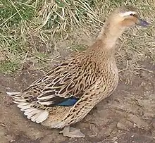 The Rouen is a heavyweight breed of domesticated duck.[1] Rouens are raised primarily for meat, exhibition,[2] or as general purpose ducks. Since they are not prolific egg layers, Rouen ducks are most commonly bred for their meat.[2] The breed originated in France sometime before the 19th century.