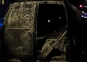 A rough ride is a form of police brutality in which a handcuffed prisoner is placed in a police van or other patrol vehicle without a seatbelt, and is thrown violently about as the vehicle is driven erratically.[1][2][3] Rough rides have been implicated in a number of injuries sustained in police custody, and commentators have speculated that the practice contributed to the death of Freddie Gray in Baltimore, Maryland, in April 2015.[1][2][4] Throughout the U.S., police have been accused of using aggressive driving tactics to "rough suspects up", resulting in numerous injuries, and millions of dollars of damages awarded to victims and their families.[5][4]