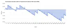 Positive progression systems involve increasing the size of one's bet when one wins. The goal of these systems is to either exacerbate the effects of winning streaks (e.g. the Paroli system) or to take advantage of changes in luck to recover more quickly from previous losses (e.g. Oscar's grind). The shape of these systems is typically small but consistent losses followed by occasional big wins. However, over the long run these wins do not compensate for the losses incurred in between.[23]