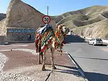 Descending again, the road briefly turns due south as it passes Mitzpe Yeriho. Turning southeast, though travellers can stop at a scenic overlook at Sea Level (0 meters), the view of the Jordan Valley at this precise point is mostly obstructed because of the surrounding mountains. The attraction for tourists is to be photographed in front of the sea level sign and, for a price, sitting atop a colourfully decorated camel.[1] The road then turns eastward and descends below sea level passing the entrance road to Nabi Musa, a pilgrimage site where Muslims believe Moses is buried. At 230 meters below sea level, the road passes Jericho Junction, providing access to Vered Yeriho and Jericho. Passing Beit HaArava, Highway 1 ends at Beit HaArava Junction with Highway 90 at an elevation of 325 meters below sea level.