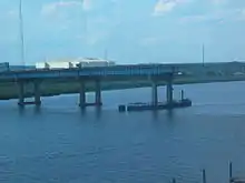 Route 3 Bridge refers to a pair of vehicular bridges over the Hackensack River in Secaucus and East Rutherford, New Jersey. Located in the immediate vicinity of the Meadowlands Sports Complex at milepost 8.50 of New Jersey Route 3, the downstream bridge carries eastbound traffic while the upstream bridge carries westbound traffic.[1] The bridges are often congested, due in part to the distance from other crossings of the river.[2]