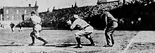 Roy Thomas, Philadelphia Phillies, bats against Philadelphia Athletics at Columbia Park on April 4, 1904