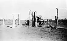 The border between New South Wales and Queensland was not officially surveyed until 1879–1880. When the Royal Mail was built, it was thought to be in New South Wales and licence fees were paid in that colony from 1874 to 1879. The survey revealed that the land was part of Queensland and from 1880 the hotel licence has been issued in Queensland. The town survey shows the hotel with yards and outbuildings close to the "Wilcannia Track". Near the hotel was a blacksmith, stock yards and "gardens" presumably for vegetables. Isaac Foster, who had acquired the hotel from Cooke in 1876, formalised his ownership by purchase of the hotel allotment and an adjoining lot in September 1880.[1]