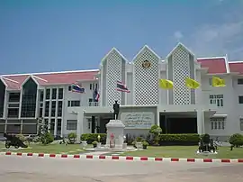 The Royal Thai Naval Academy (Thai: โรงเรียนนายเรือ) (RTNA) was established by King Chulalongkorn (Rama V) in 1898. He officially opened the academy on 20 November 1906.[1] Originally located on the royal yacht Maha Chakri and some other boats donated by the king, the academy later moved to Wang Derm Palace in Thonburi (in the compound of the present headquarters of the Royal Thai Navy), then to Sattahip, and finally to its current location in Samut Prakan in 1952. The academy is served by Royal Thai Naval Academy BTS station.[2]