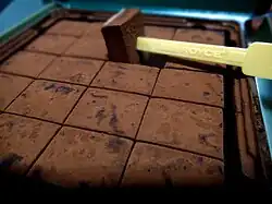 In 1995 Royce' introduced the Nama Chocolate product line, which became a mainstay for the company.[2] Nama chocolate is a form of ganache made with melted cacao and fresh cream, and dusted with fine cocoa powder.[1][3] The word nama means raw, and nama chocolate is a regulated type of Japanese chocolate.