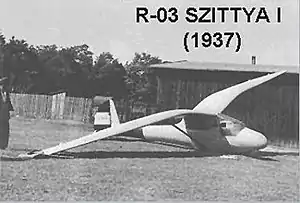 Ernő Rubik began the design of the R-03 Szittya to meet a Hungarian club call for a motor glider, intending to strut-mount the engine in pusher configuration over the central fuselage. Financial problems prevented purchase of the engine and the aircraft was completed as a conventional glider, named the Szittya I. Its first flight was in August 1937 and, after a testing programme begun in September, it was cleared for basic aerobatics.[1][2]