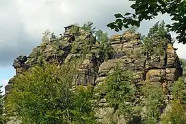 Rudolfův kámen is part of the Jetřichovice Rocks and belong to the most visited viewing points in the area. It was named in 1824 after Rudolf, 6th Prince Kinsky of Wchinitz and Tettau. A hut was built at the top.[1]