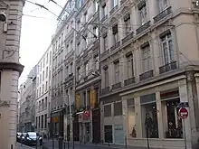 In 1844, there was the Hôtel de France at No.13.[8] In 1847, a chapel in the street was then the only evangelical place of worship in Lyon at the time.[9] Among the famous residents of the street, there were the family of Louise Labé,[10] painter Salomon Bernard (16th century), and architects Barthélémy Vignon and Prosper Mourand (19th century).[6]