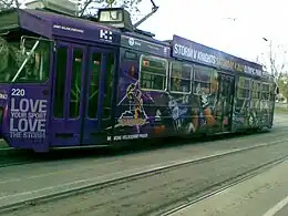 Melbourne tram in 2009 featuring Melbourne Storm advertising livery