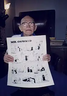 Eventually, Johnson dropped his other strips to work exclusively on Mister Oswald. Even after his retirement from retailing in 1963, he continued his strip for many years, finally handing it over to Larry Day in 1989, at the age of 95. Russ Johnson had worked on his strip continuously for 62 years. Even in retirement, Johnson continued to work, trying to peddle a mainstream comic strip about retirees. The strip remained unpublished. He died on September 7, 1995, at the age of 101.