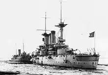 In 1916 the Russian government decided to reinforce its naval strength outside the Baltic and Black Seas.[25] As Japan and Russia were allies during the war, the Japanese government sold Tango and some other ex-Russian warships back to Russia in March. The battleship arrived at Vladivostok on 2 April and was turned over to the Russians on either 3 or 4 April. Her former name had been given to the new dreadnought battleship Poltava, so Tango was renamed Chesma,[18][26] after the 1770 Battle of Chesma.[27] She departed Vladivostok on 2 July and arrived at Port Said, Egypt, on 19 September.[26]