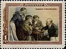 Jokes about Vladimir Lenin, the leader of the Russian Revolution of 1917, typically made fun of characteristics popularized by propaganda: his supposed kindness, his love of children (Lenin never had children of his own), his sharing nature, his kind eyes, etc. Accordingly, in jokes Lenin is often depicted as sneaky and hypocritical. A popular joke set-up is Lenin interacting with the head of the secret police, Felix Edmundovich Dzerzhinsky, in the Smolny Institute, the seat of the revolutionary communist government in Petrograd, or with khodoki, peasants who came to see Lenin.