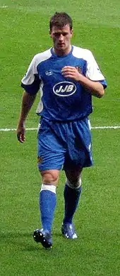 He scored 10 goals in 51 appearances in the 2004–05 season, including one in the League One play-off semi-final second leg victory over Hartlepool United; the tie went to penalties however, and Taylor missed one of the penalties as Tranmere were beaten 6–5.[8] He was voted onto the League One PFA Team of the Year for his performances across the season.[9] He was also voted as Tranmere Rovers Player of the Year by both his teammates and the supporters.[10] In July 2005, he was sold to Wigan Athletic for £750,000 (potentially rising to £1.3 million with appearance clauses); and signed a four-year contract.[11] The transfer ended weeks of speculation, that had seemed him linked with Norwich City, Arsenal, and Everton; Norwich manager Nigel Worthington had in fact stated that "he's gone to Everton".[12]