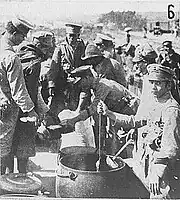 Both men and women participated, and little coordination and planning was required.[178] It is not known for sure who started the lootings; they may have been a spontaneous movement, but some sources attribute their initiation to João Cabanas, a lieutenant in the revolutionary army.[179] In his account, Cabanas claimed to have shot two looters caught in the act.[180] Finding the Municipal Market surrounded by an angry crowd, he ordered the doors to be broken down and the goods distributed to the poor, taking care only to avoid abuse, which was not entirely possible. According to the judicial trial, the rebels began looting to supply their troops, and the people seized the opportunity.[181] There is also a report of a popular sack supported by the loyalist army in Vila Mariana.[182]