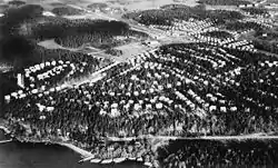 Encompassing more than 500 buildings, it remains the largest coherent functionalistic villa area in Sweden[1] and possibly the world,[2] still well-preserved more than half a century after its construction[1] 1933–40[2] and protected as a national cultural heritage.