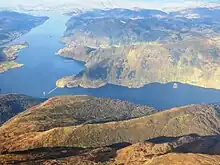 Sørfjorden is a 30-kilometre (19 mi) long fjord in Vestland county, Norway. The fjord flows around the west and south sides of the island of Osterøy, going through the municipalities of Osterøy, Bergen, and Vaksdal. The fjord begins at the village of Vaksdal where the Veafjorden flows into the Sørfjorden, it then heads west and then north before emptying into the Osterfjorden. The fjord flows past the following villages: Bruvik, Vaksdal, Hausvik, Garnes, Ytre Arna, Hylkje, Breistein, Valestrandfossen, Steinstø and Hamre.[1]