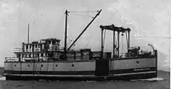 S.G. Simpson was designed by Capt. Ed Gustafson and built in 1907 at Tacoma, Washington by the shipyard of Crawford and Reid for the Shelton Transportation Company, to replace City of Shelton on the Olympia-Shelton route. She was a sternwheeler, 115.2 feet long, 26.3' on the beam, with 6.1' depth of hold, and rated at 190 tons.[2] S.G. Simpson was named after Solomon Grout Simpson, a prominent man in the logging business in Shelton and Mason County. S.G. Simpson was launched into the water not fully complete, as some sternwheelers, such as Bailey Gatzert had been, but with only her hull completed, with her upper works and paddlewheel added later. S.G. Simpson made 15 miles per hour (24 km/h) on her trial run.[3][4]