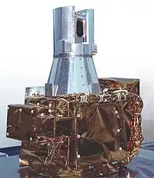 The 76 kg (168 lb) SAGE III instrument is a grating spectrometer that measures ultraviolet and visible energy.[2] It relies upon the flight-proven designs used in the Stratospheric Aerosol Measurement (SAM I) and first and second SAGE instruments. The SAGE III design incorporates charge-coupled device (CCD) array detectors and a 16 bit A/D converter. Combined, these devices allow for wavelength calibration, a self-consistent determination of the viewing geometry, lunar occultation measurements, and expanded wavelength coverage.