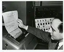 SEAC (Standards Eastern Automatic Computer[1] or Standards Electronic Automatic Computer)[2] was a first-generation electronic computer, built in 1950 by the U.S. National Bureau of Standards (NBS) and was initially called the National Bureau of Standards Interim Computer, because it was a small-scale computer designed to be built quickly and put into operation while the NBS waited for more powerful computers to be completed (the DYSEAC). The team that developed SEAC was organized by Samuel N. Alexander.[3] SEAC was demonstrated in April 1950 and was dedicated in June 1950;[4][5][6] it is claimed to be the first fully operational stored-program electronic computer in the US.[7]