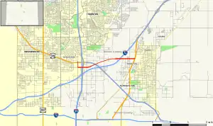 ![]() Map of Adams County in north central Colorado with SH 224 highlighted in red | ||||