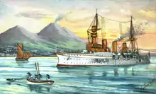 The navy did not initially plan to recommission Grille during 1874, but after the gunboat Albatross was deployed to Spanish waters, the navy hastily commissioned Grille to take her place in the annual fleet maneuvers held in September. On 19 September, she hosted now-Kaiser Wilhelm I for a review of the training squadron and the next day, she was present for the launching ceremony of the new ironclad Friedrich der Grosse. Grille returned to yacht duties for Prince Friedrich in 1875, and in September that year, Wilhelm I and several Bundesfürsten (federal princes) came aboard for another fleet review. She remained out of commission for 1876 and 1877, but was recommissioned the next year. From 10 to 17 May, she hosted several members from the Reichstag and the Bundesrat (Federal Council) during the launching ceremonies for the ironclad Bayern, followed by torpedo demonstrations off Friedrichsort. The next year, she was reclassified as an aviso and rearmed, her place as imperial yacht having been taken by Hohenzollern. She served with the training squadron from 5 to 22 May, and in late June, she assisted Friedrich der Grosse and two tugboats to tow a floating dry dock from Kiel to Swinemünde. Another fleet review for the Kaiser was held from 10 to 15 September in Danzig Bay and Grille was decommissioned on 25 September.[18]
