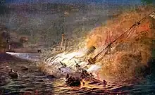 Painting depicting the sinking of Leipzig