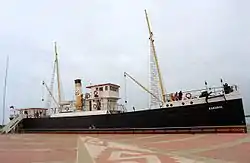 The steamer Bandırma, built 1878 in Paisley, Scotland, was a 47.7-metre (156 ft) cargo ship with 192 gross register tons capacity. It was christened Trocadero, and under this name, it sailed five years long as a freighter for Dansey and Robinson.[1] In 1883, it was purchased by Greek ship-owner H. Psicha Preaus, and renamed SS Kymi. 7 years later, it was sold to another Greek ship-owner, Cap. Andreadis, sailing under the same name. In 1891, it went down following an accident but could be floated again.